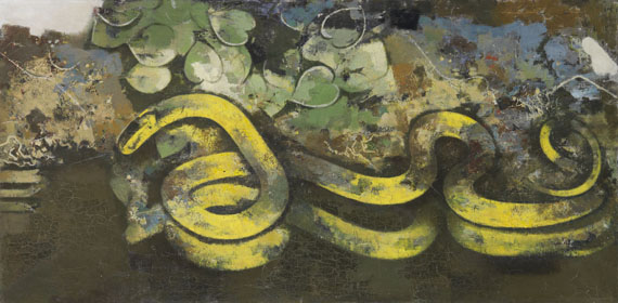 Schlange über Wasser gleitend (Die gelbe Schlange)