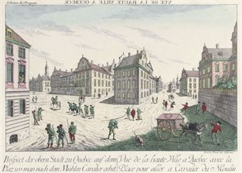 | Vue de la haute Ville a Quebeck avec la Place pour aller a Cavalier du Moulin; and Vue de la Place Capitale dans la Ville Basse | |