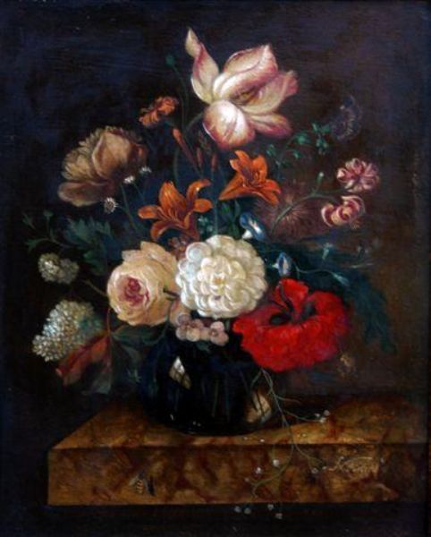Still life of mixed flowers in a glass vase