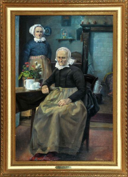 Holländisches Stubeninterieur mit zwei Bäuerinnen