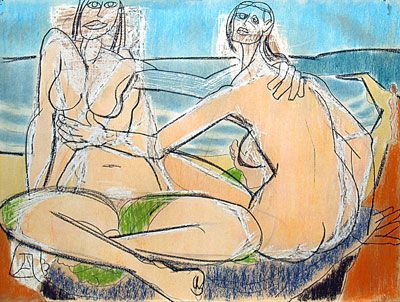Zwei weibliche Akte beim Liebesspiel am Strand