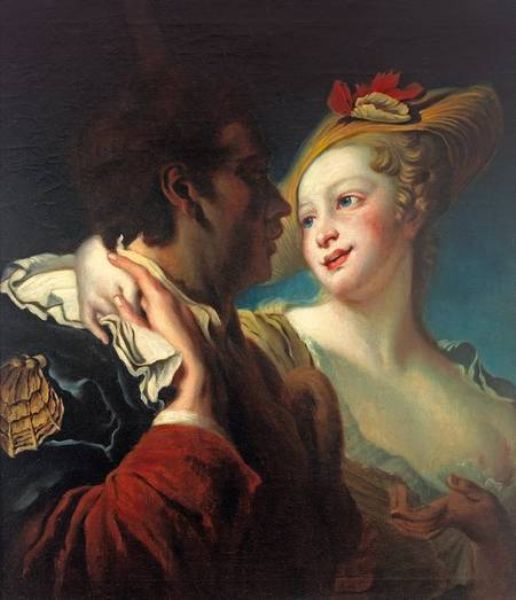Reizvolle Schöne mit Pilger im zärtlichen Disput