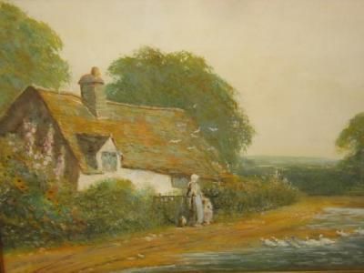 Mother and Child before a Thatched Cottage