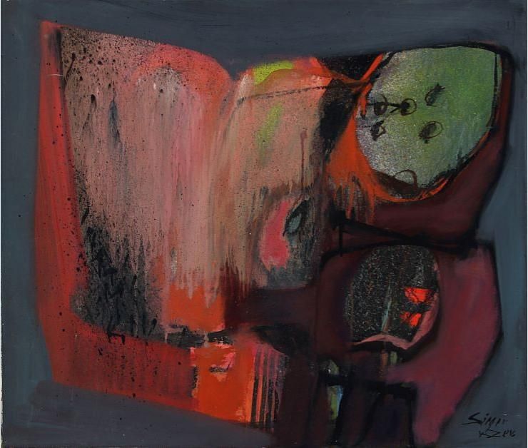 Composition in red and grey colours