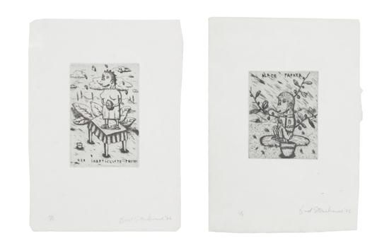 A pair of works titled Her Inarticulate Poetry and Black Papaya