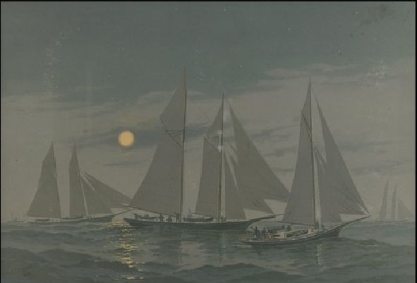 | MOONLIGHT ON NANTUCKET SHOALS IBIS. TIDAL WAVE. ESTELLE. SAGITTA AEOLUS (PLATE XIV FROM AMERICAN YACHTS, THEIR CLUB AND THEIR RA | |