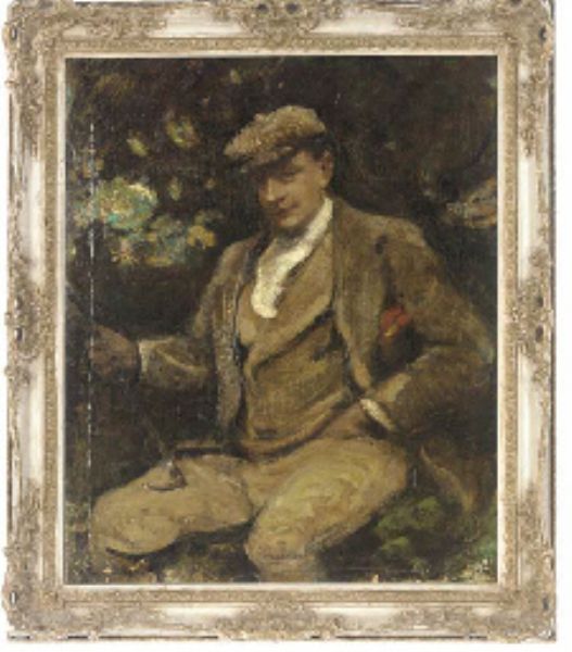 | Portrait of a gentleman, three-quarter-length, seated wearing a cap and holding a riding crop | |