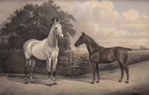 Kitty Grey and Kitty. Zwei Pferde am Paddock.