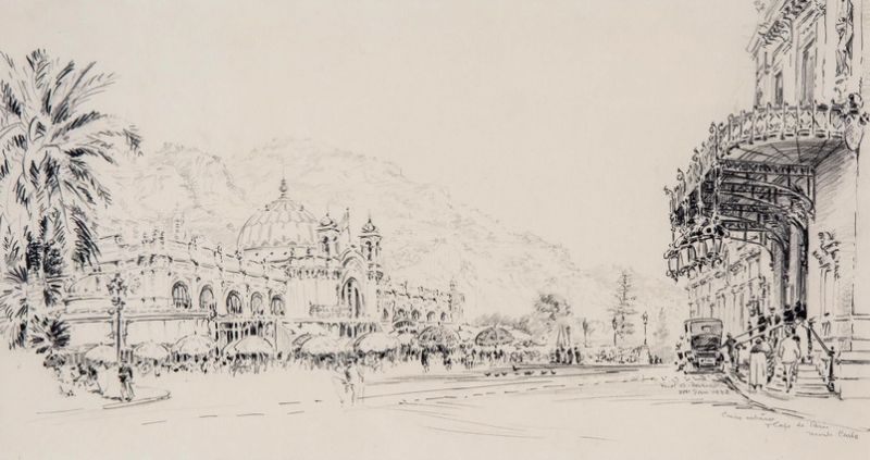 | View of the railroad viaduct, with Church of Sainte Dévote behind, Monte Carlo | |