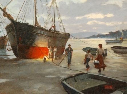 Harbour scene by moonlight