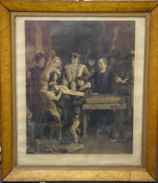 | Mr Eaxton showing the first specimen of his printing to King Edward IV & the Royal family in the Almomy at Westminster 1477 | |