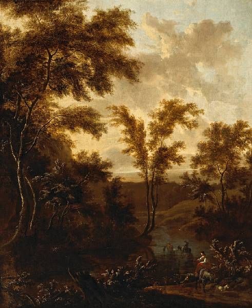 | An Italianate landscape with animals and figures fording a river | |