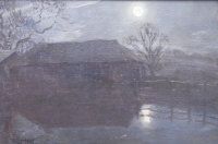Moonlight over farm buildings