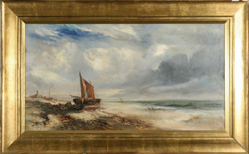 tillskriven,"Caister", strandparti med båt