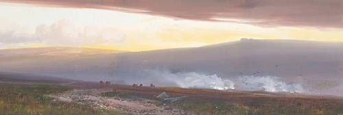 Burning the gorse and heather near the Tor Cleave, Dartmoor.