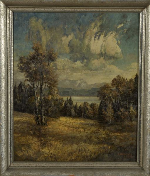 Blick von einer Anhöhe auf einen See umgegeben von einem Wald