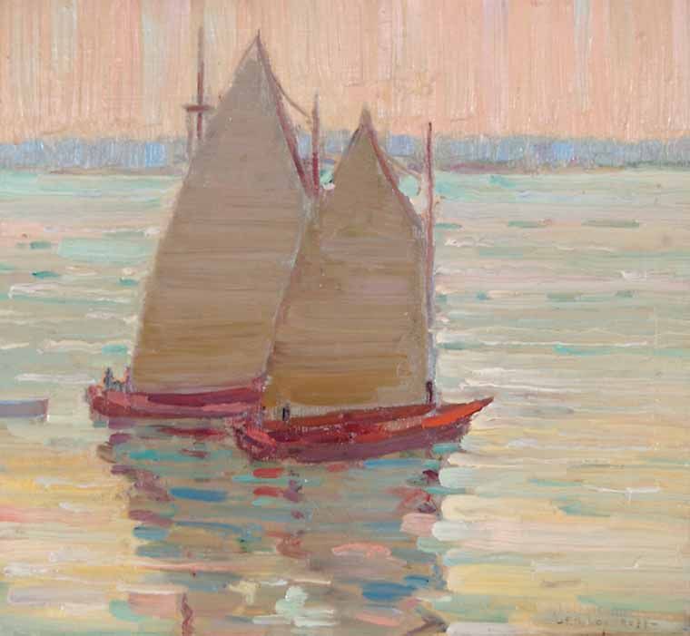 | Untitled - Sailboats at Full Mast, Evening Light | |