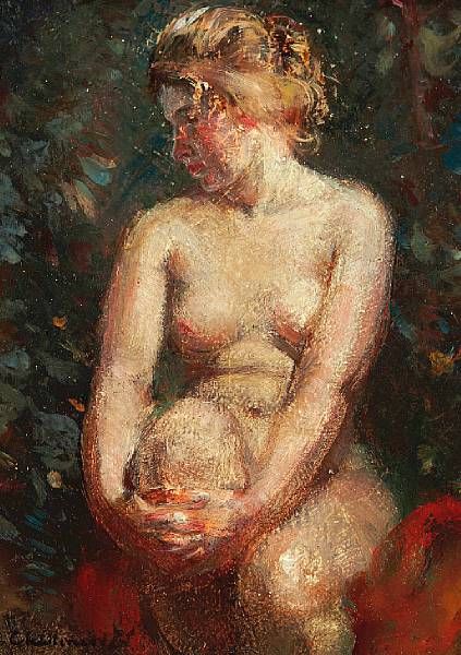Seated nude signed