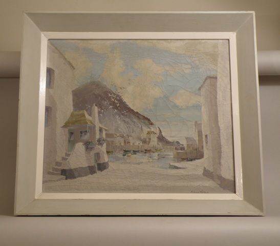 Polperro Harbour, a view down to the water with moored fishing vessels