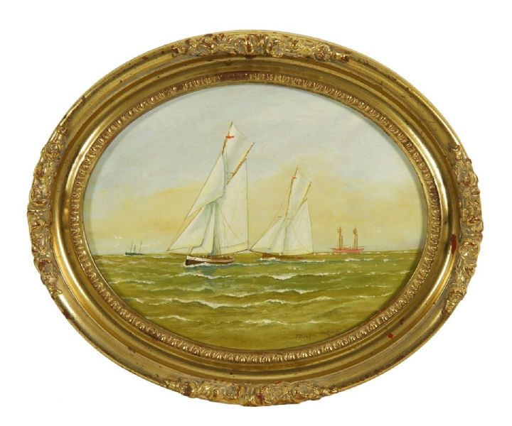 | Yachts Galatea & Mayflower ... Around the Sandy Hook Light Ship", depicting an America's Cup racing scene | |