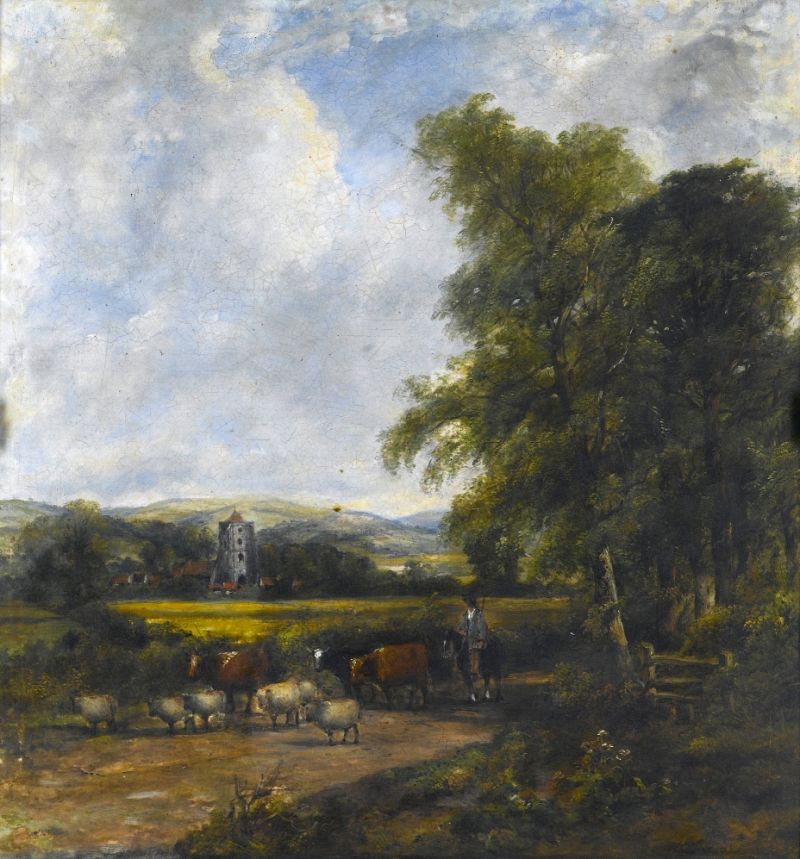 | Sheep and drover in a landscape | |