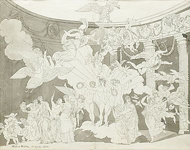 | APOLLO OMGIVEN AV GRACER OCH MUSER MED MINERVA OCH MERCURIUS I HÖJDEN. | |