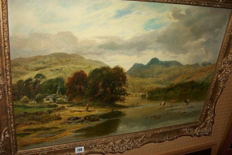 a Lakeland scene with cattle watering