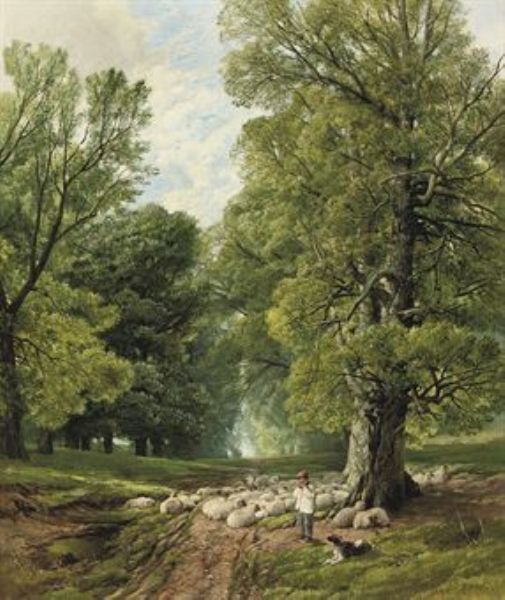 | A Shepherd and his flock in a shady glade | |