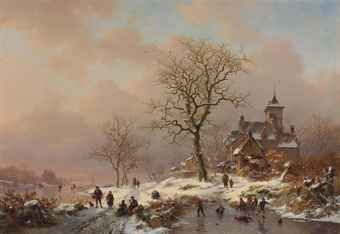 | Winter landscape with figures playing on the ice | |