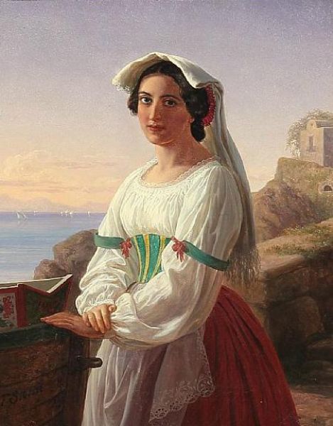 An Italian woman with the sea in the background
