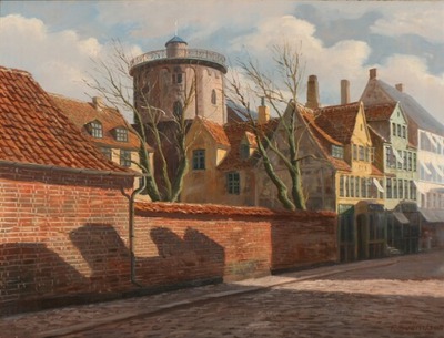 Streetscene with Rundetårn in Copenhagen. Signed F. Svendsen. Oil on canvas. 51×66 cm. | |