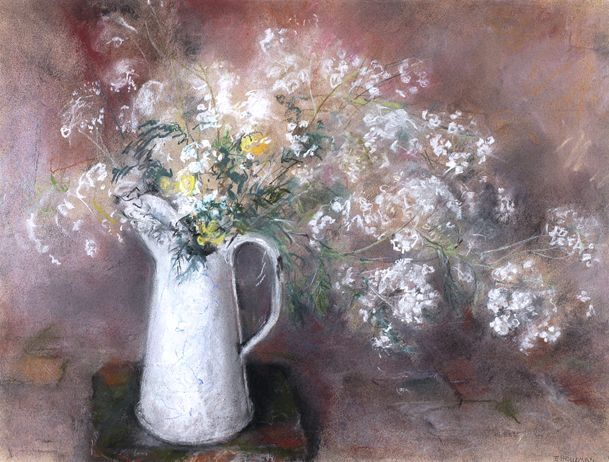 Wild flowers in an enamel jug