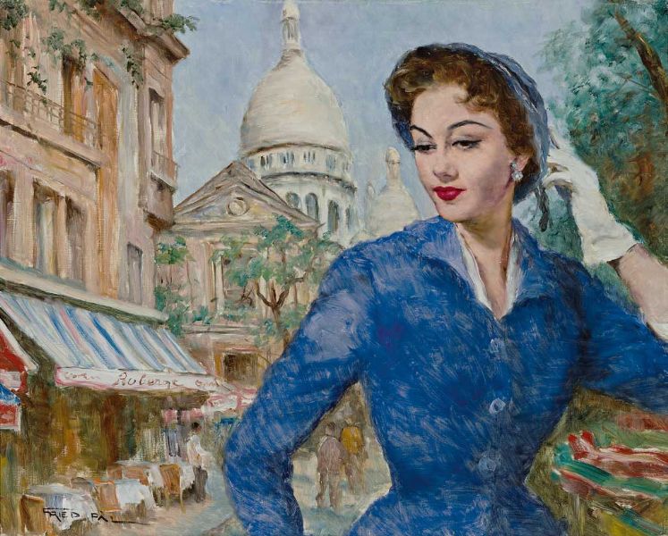 Portrait einer hübschen Pariserin vor dem Pantheon.