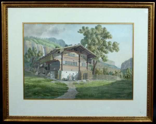 Swiss Chalet in a Landscape with Figures