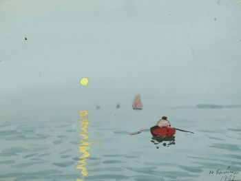 | Ruderer bei Mondschein. Morgenstimmung. Segler auf der Elbe | |
