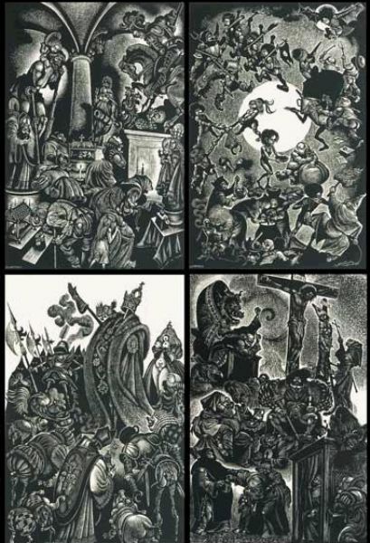 | Four xylopgraphs from the Series "In Priase of Folly"; "The Folly of the Monks", "The Human Comedy", "The Folly of Worshipping I | |