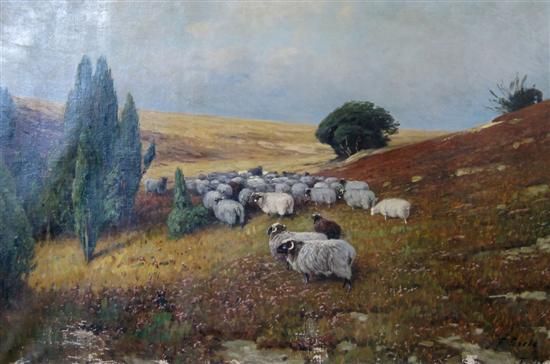 Landscape with flock of sheep