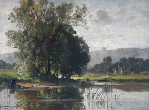 Landschaft mit Bäumen und Figurenstaffage, an einem Gewässer