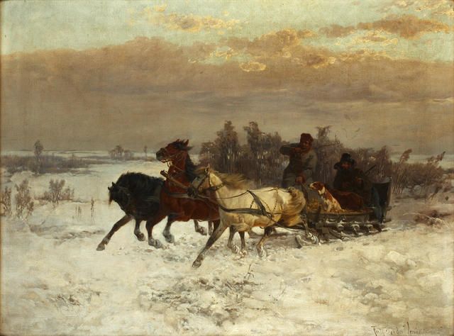 A troika sledge on the snows
