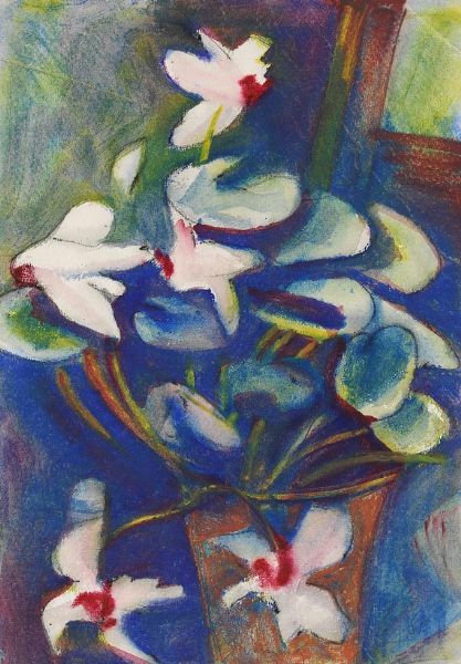 Watercolor gouache and coloured chalks
