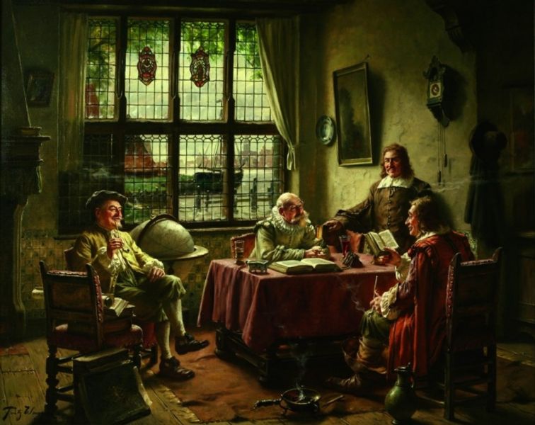 FRÖHLICHE TISCHGESELLSCHAFT IN HOLLÄNDISCHEM INTERIEUR.
