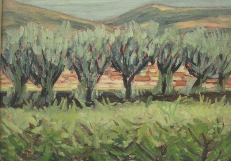 Olivträd vid vingård, Aniane, Frankrike