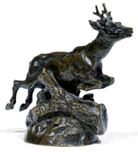Chevreuil bondissant au-dessus d'un tronc d'arbre Statuette