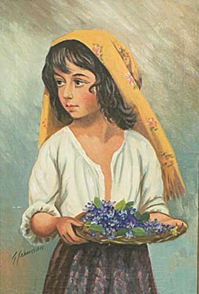 flicka med blomsterkorg