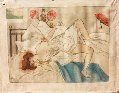 Femme nue allongée dans un décor japonisant