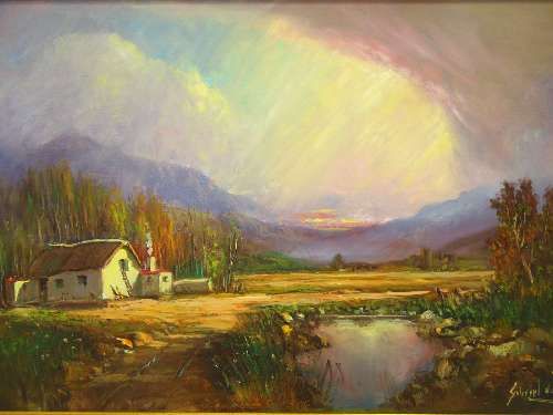 THATCHED COTTAGE WITH THUNDER CLOUDS