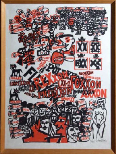 Lithograph in red and black