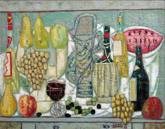 Nature morte aux bouteilles et compotier, 1953.