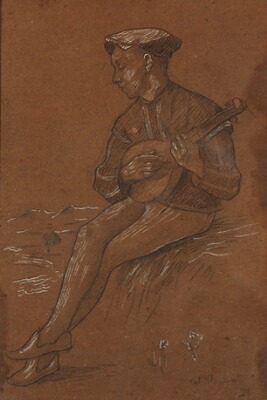 “En Page (Carl Frydensberg)”. Signed and dated Gad. F. Clement 1894 on the reverse. Pencil enhanced with white on paper. Visible size 28×19 cm. | |