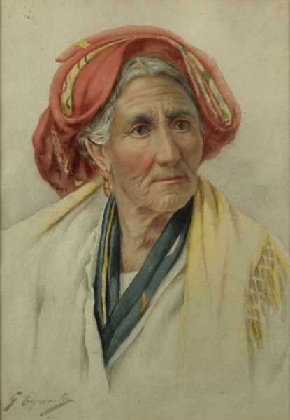 Shoulder length portrait of an elderly Italian woman